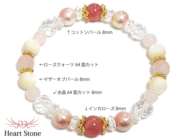 インカローズ8mm玉を使用。白濁、インクルージョン、黒の汚れ、傷・欠けを部分的に含む粒を使用致します。