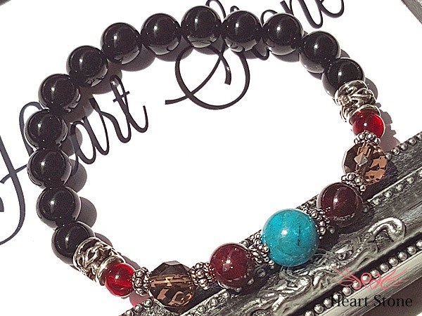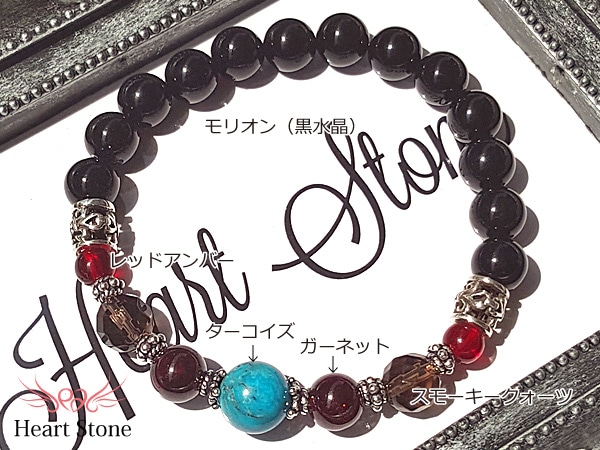 天然ターコイズの一連ブレスレットと同時に購入させて頂きました。こちらは、天然ターコイズとモリオンの組み合わせに惹かれて購入です。モリオンは魔除けで最強とよくおききします。オニキスは持っているのですが、モリオンは初めてで、今からつけるのが楽しみです。真っ黒なモリオンに対して天然ターコイズがさらに輝いて見える感じです。 評価 ★★★★★