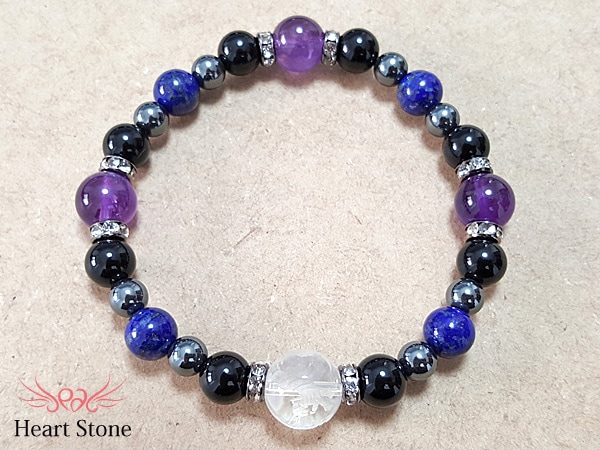 【邪気払い】水晶彫り四神一珠水晶×ラピスラズリ×アメジストブレスレット