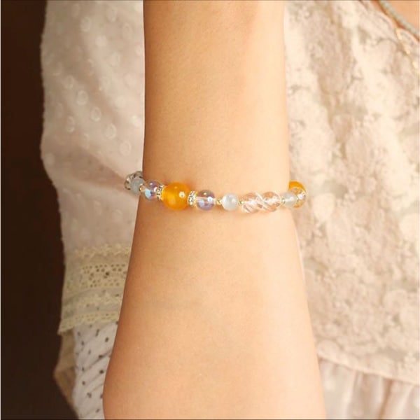 爽やかな色合いで夏にもピッタリ!イエローメノウとシルバームーンストーンのブレスレット