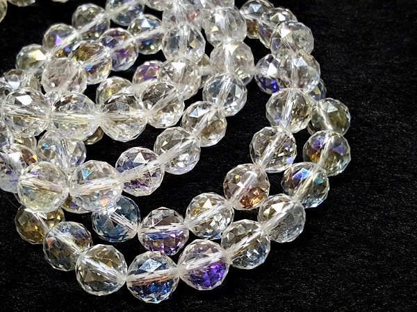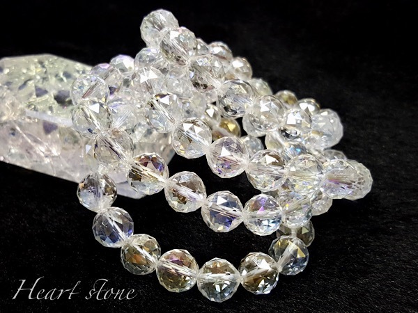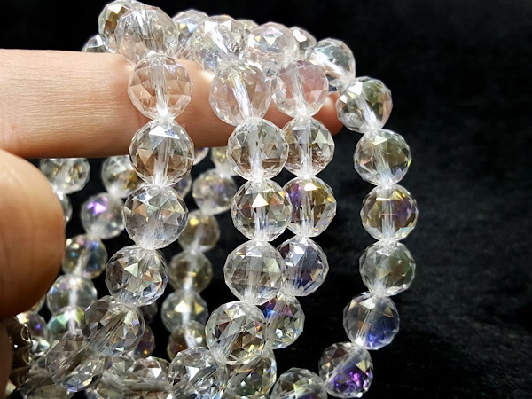 レインボーオーラクォーツ 10mm 天然石ブレスレット|トライアングルカットの光彩が美しいオーロラカラー