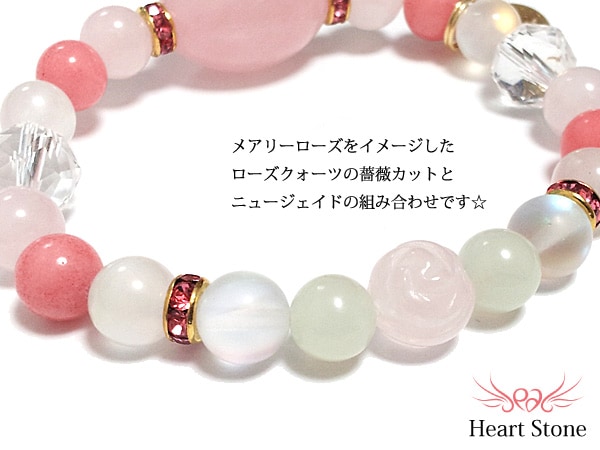 メアリーローズをイメージしたローズクォーツの薔薇カットとニュージェイドの組み合わせ☆