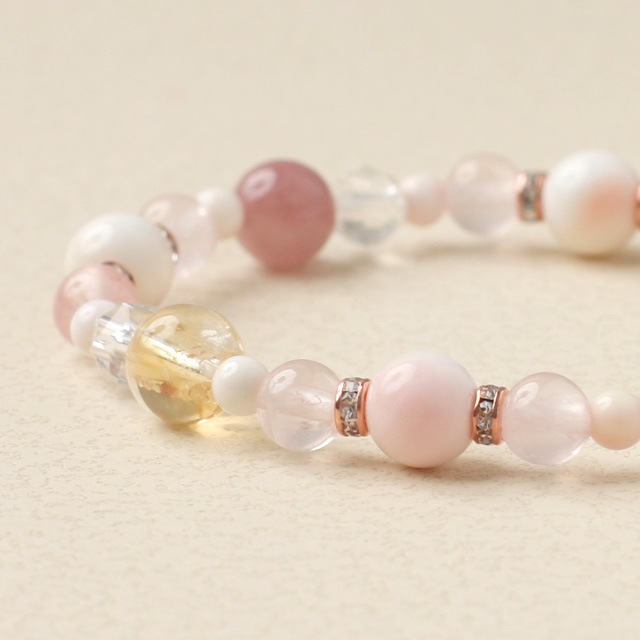 【上品な雰囲気で服装を選ばない♪】クイーンコンクシェル&ディープローズクォーツmixブレスレット★