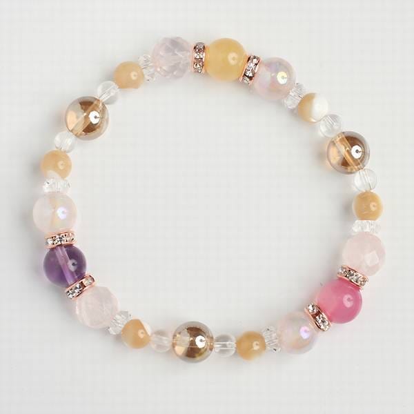 2019/12/08 購入者さん イメージ通りのとても上品で綺麗なブレスレットでした。アメジストは写真よりも少し色が薄かったのですが透明度が高くてキラキラしていました。初めて見たワインレッドアゲートのピンク色が好みで見惚れてしまいました。サイズ調整にも快く応じて下さり感謝しています。 評価 ★★★★★